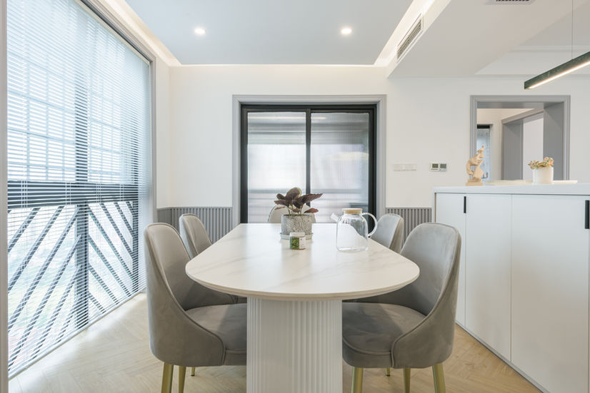 在面对已被隔墙划分为两户对外出租且格局凌乱的复杂条件下,团队一方面需要理清室内合理的空间关系,另一方面不希望用“网红的”、“时尚的”或“华丽而无用的”空间话语来定义未来住户的生活。当“传统”以电视作为核心的生活模式逐渐被瓦解,但电视及屏幕仍然是日常生活中与外部世界保持“沟通”的重要媒介的背景下,我们希望用四季园项目来回应如何定义更加多样的生活方式;当主动和被动的居家办公需求越来越重要时,生活模式又会产生哪些积极的变化。